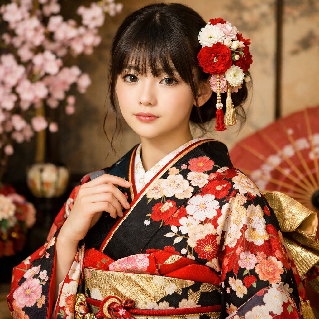 - 表現力: カメラを見据える目力の強さと、振袖の豪華さが喧嘩しない存在感。